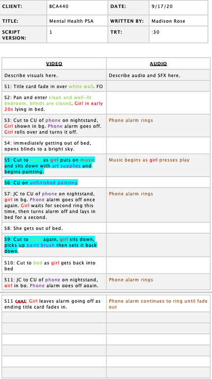 Below are some examples of my pre-production process and how my creative mind works before editing, through storyboard, moodboards, shot lists, and shot templates.